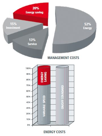 Versiunea cu turatie variabila VS, ofera performante ridicate combinate cu cele mai eficiente solutii de economisire a energiei.