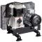Este un compresor fara butelie, cu doua pistoane si doua trepte de compresie, actionat prin curea de un motor electric monofazat. Unitate de pompare in doua etape, cu cilindru din fonta, cu colectoare mari pentru o mai buna racire.