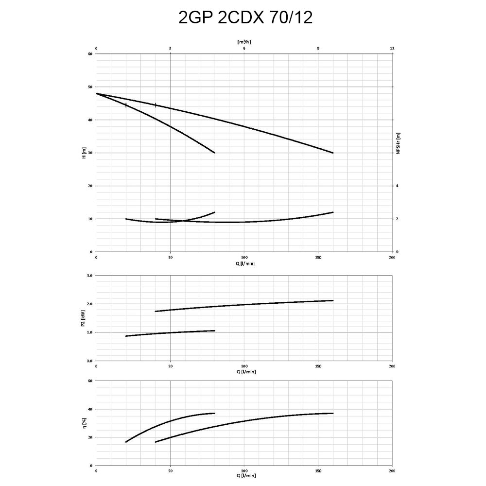 Grup de pompare inox Ebara 2GP2CDX70/12, 2X0.9 KW/ 400 V, debit maxim 160 l/min, inaltime de refulare maxima 48 m, fara recipienti