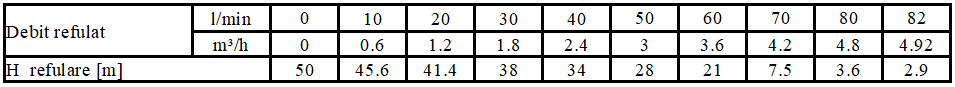 | Inaltime de refulare (m) | 50 |