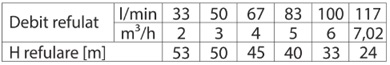 | Inaltime de refulare (m) | 53 |