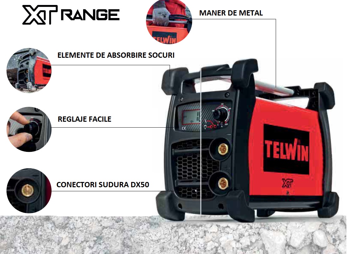 | Accesorii standard | - cablu de sudura 3 m, sectiune 1x25 mm2; - cablu de sudura 2 m, sectiune 1x25 mm2; - cleste de masa; - conectori de sudura DX50; - valiza pentru transport, din aluminiu. |