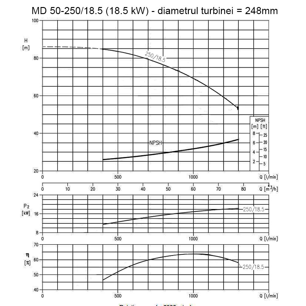 Pompa centrifugala monoetajata din fonta, Ebara MD50-250/18.5, putere 18.5 kW, debit maxim 78mc/ora, inaltime maxima de refulare 81.5m