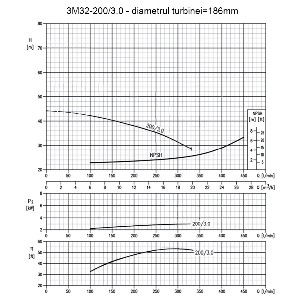 Pompa centrifugala monoetajata din inox Ebara 3M32-200/3.0, putere 3 kW, debit maxim 20mc/ora, inaltime refulare maxima 42m