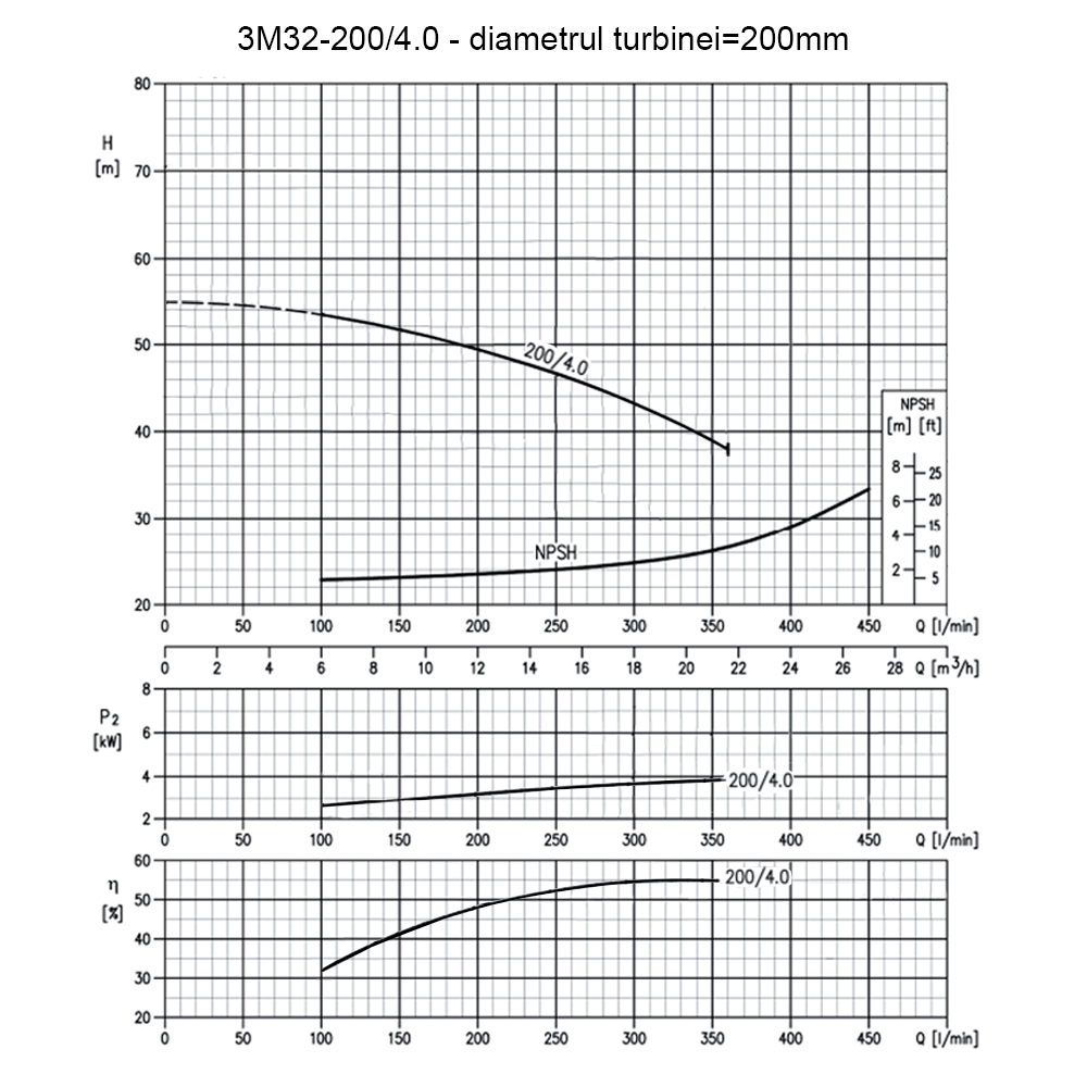 Pompa centrifugala monoetajata din inox Ebara 3M32-200/4.0, putere 4 kW, debit maxim 22mc/ora, inaltime refulare maxima 53.5m