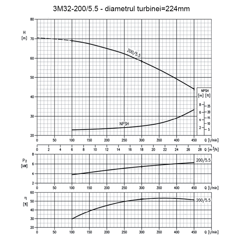 Pompa centrifugala monoetajata din inox Ebara 3M32-200/5.5, putere 5.5 kW, debit maxim 18mc/ora, inaltime refulare maxima 69m