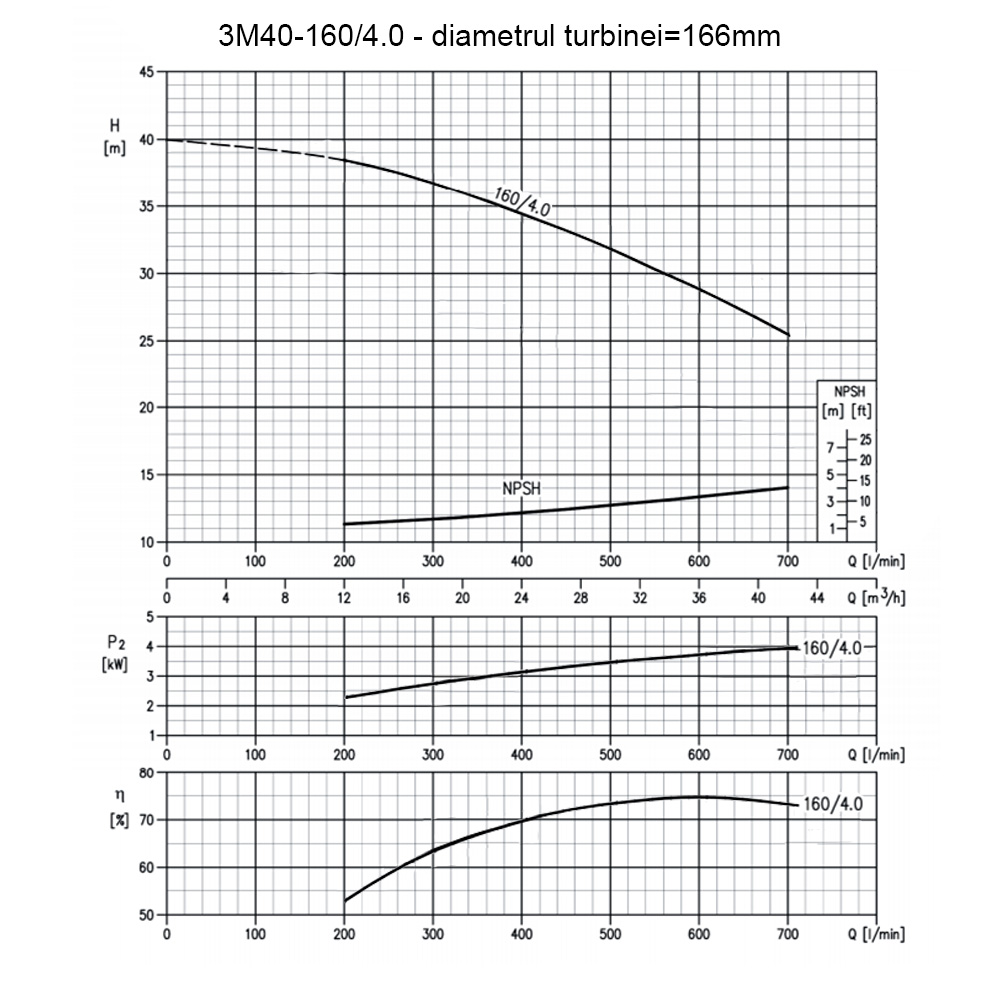 Pompa centrifugala monoetajata din inox Ebara 3M40-160/4.0, putere 4 kW, debit maxim 42mc/ora, inaltime refulare maxima 40m
