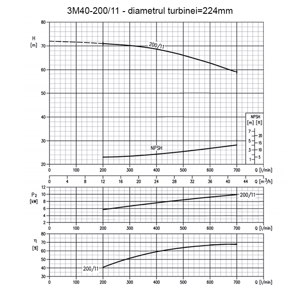 Pompa centrifugala monoetajata din inox Ebara 3M40-200/11, putere 11 kW, debit maxim 42mc/ora, inaltime refulare maxima 72m