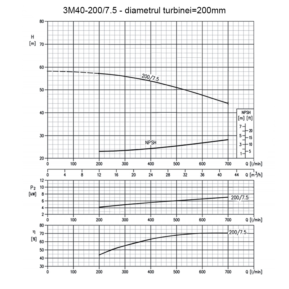 Pompa centrifugala monoetajata din inox Ebara 3M40-200/7.5, putere 7.5 kW, debit maxim 42mc/ora, inaltime refulare maxima 58m
