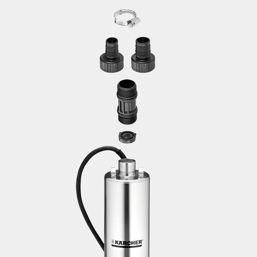 Pompa submersibila Karcher BP4 Deep Well, 1.645-421.0, 700 W, 4600 l/h, 43 m este ideala pentru folosirea surselor alternative de apa. Este adecvata atat pentru udarea gradinii, cat si pentru alimentarea cu apa a casei - impreuna cu un regulator de presiune. Folosirea apei din fantana proprie pentru gospodarie si gradina, va genera economii considerabile de apa potabila. Carcasa din inox a pompei si racordurile cu filet sunt extrem de rezistente. Prefiltrul integrat si piciorul de fixare protejeaza corespunzator admisia de apa a pompei contra contaminarii in timpul si dupa instalare. Funia de 15 m furnizata poate fi montata pe pompa, permitand astfel coborarea in siguranta in put. Datorita comutatorului de pornire/oprire de la capatul cablului, pompa poate fi utilizata confortabil si in siguranta. Setul inclus pentru racordarea furtunului poate fi utilizat pentru conectarea furtunurilor de 3/4" si 1" la pompa, fara niciun fel de probleme. Include o supapa de siguranta integrata.
