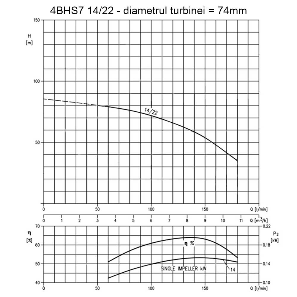 Pompa submersibila multietajata Ebara 4BHS7 14, debit max. 10800 l/h, inaltime max. refulare 80 m, 4", fara motor
