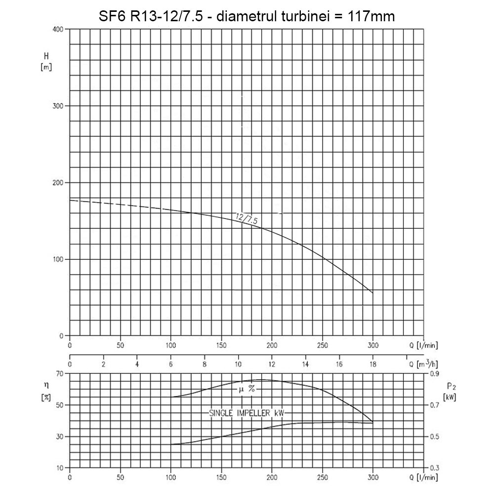Pompa submersibila multietajata Ebara SF6R13-12/7.5, debit max. 350 l/min, inaltime max. refulare 181 m, 6", fara motor