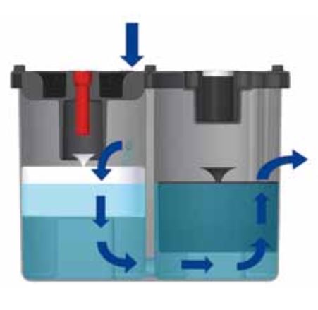 Separatoarele apa-ulei cu un sistem de separare in mai multe trepte, cu doua turnuri, prezinta un element filtrant din fibra de propilena si un element filtrant din carbon activ special tratat pentru a maximiza absorbtia, realizand o filtrare cu eficienta maxima.