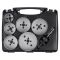 Set 7 piese pentru instalatii electrice Wolfcraft 5423000, 6 carote bimetal diametru D 40, 54, 65, 68, 74, 86 mm, 1 adaptor pentru carote bimetal cu burghiu de centrare