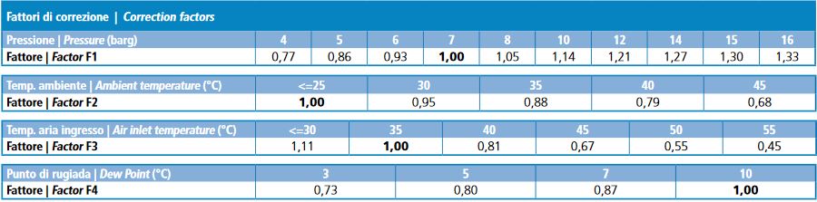 Debitul de aer refulat se ia conform ISO 7183, la o temperatura de 7 bar, temperatura interioara a aeruluide 35 °C si temperatura mediului ambiant de 25 °C.