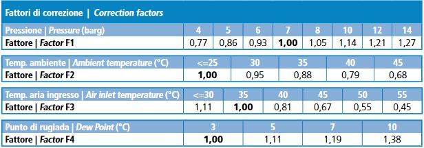 Debitul de aer refulat se ia conform ISO 7183, la o temperatura de 7 bar, temperatura interioara a aeruluide 35 °C si temperatura mediului ambiant de 25 °C.